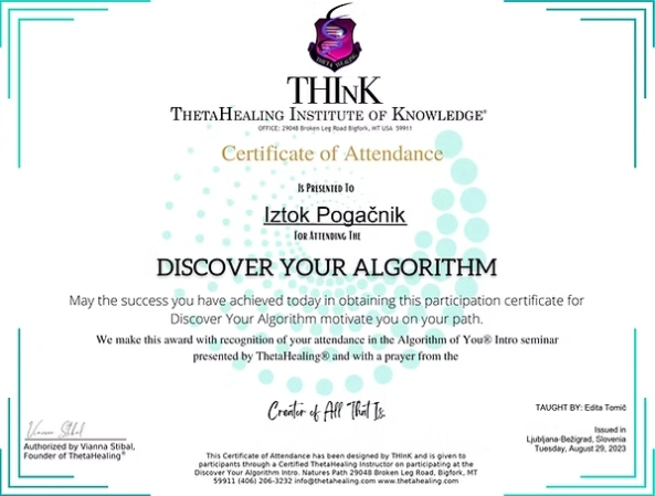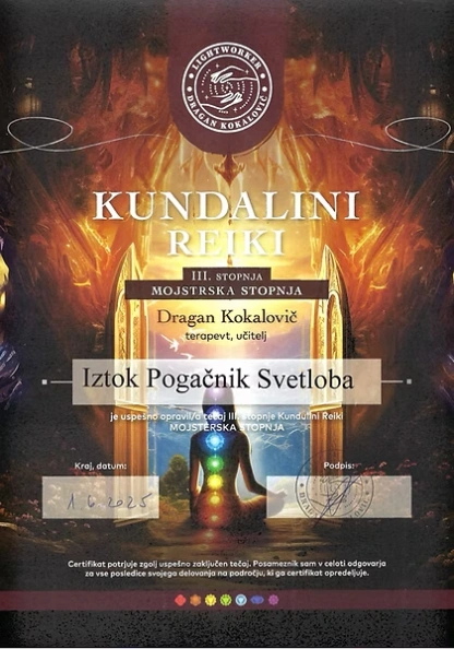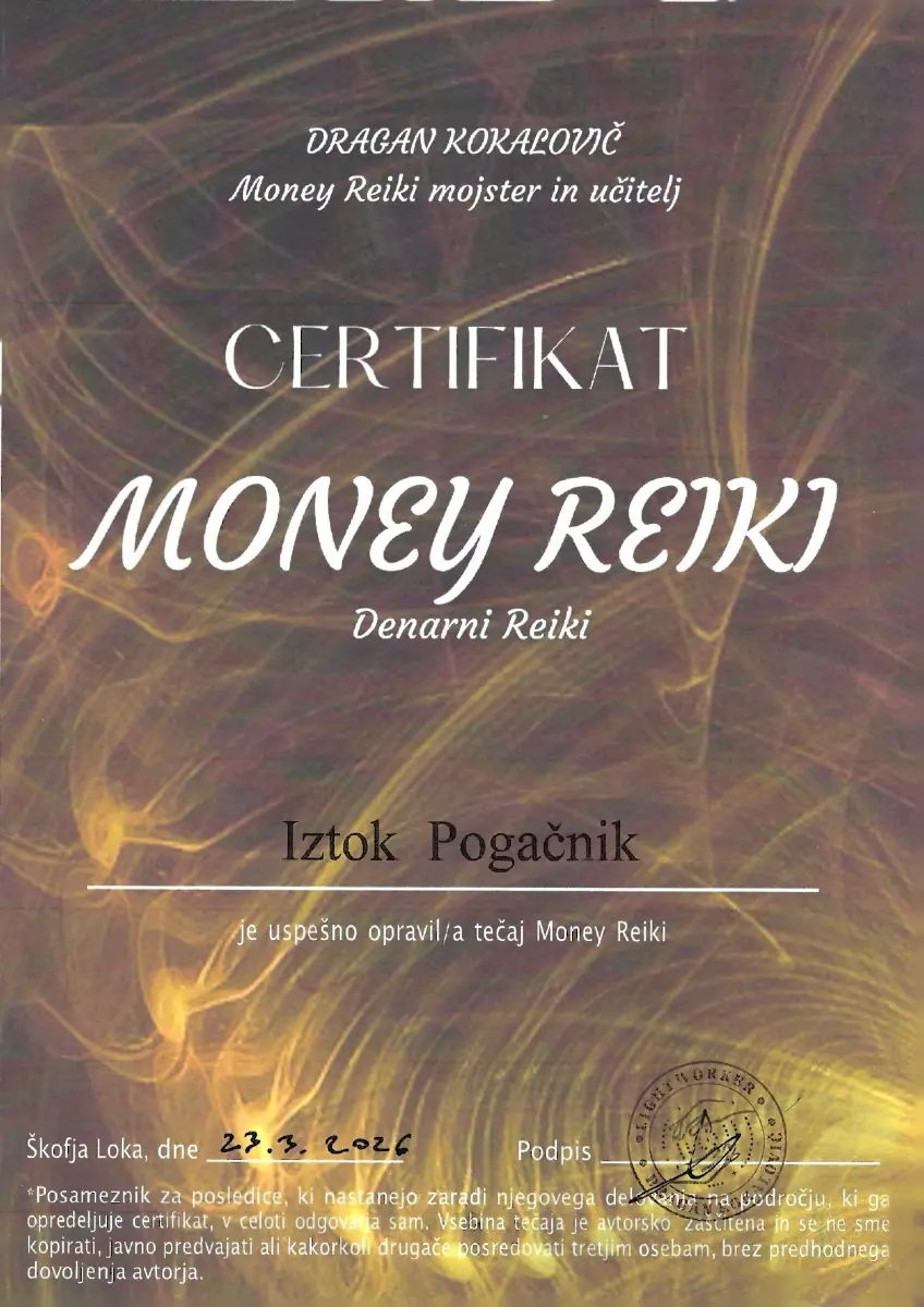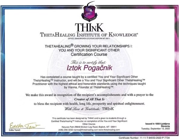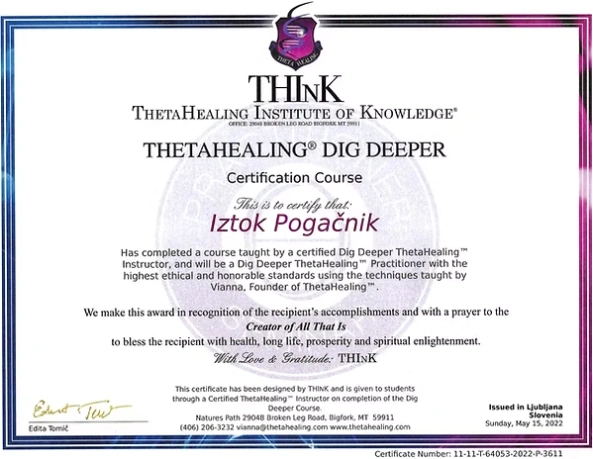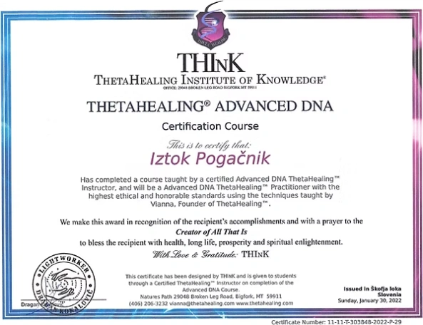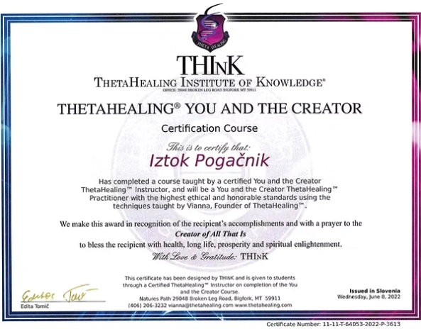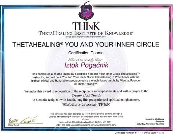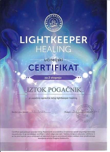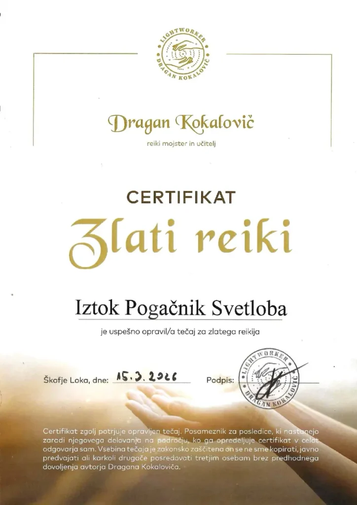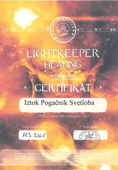 Preglejte nabor licenc in certifikatov, ki so temelj moje terapevtske prakse. Združujem globoka energijska znanja s strokovnim poznavanjem telesa, da vam zagotovim varno in celostno pot do vaše preobrazbe.